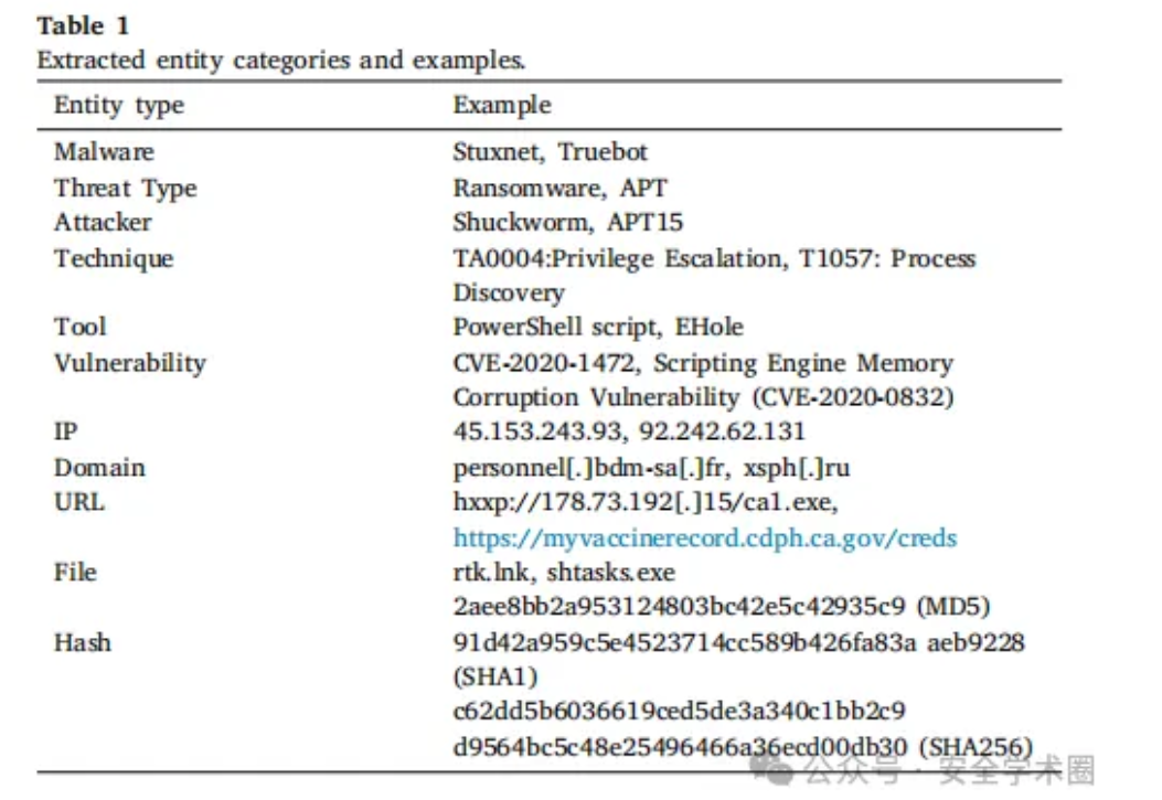 信息覆盖不全:仅能提取碎片化指标(如IP、域名),忽略高阶实体(攻击者、TTPs)及其关联关系。 -