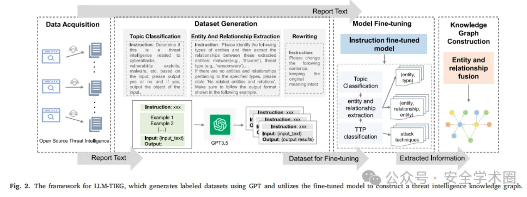 LLM-TIKG 采用 LoRA低秩适配技术微调Llama2-7B模型,进行内存处理,分段处理长文本(保留段落结构),避免信息截断。并且采取逻辑执行:通过指令微调(Instruction Tuning)使模型精准执行报告主题分类、实体关系抽取、TTP分类三大任务。