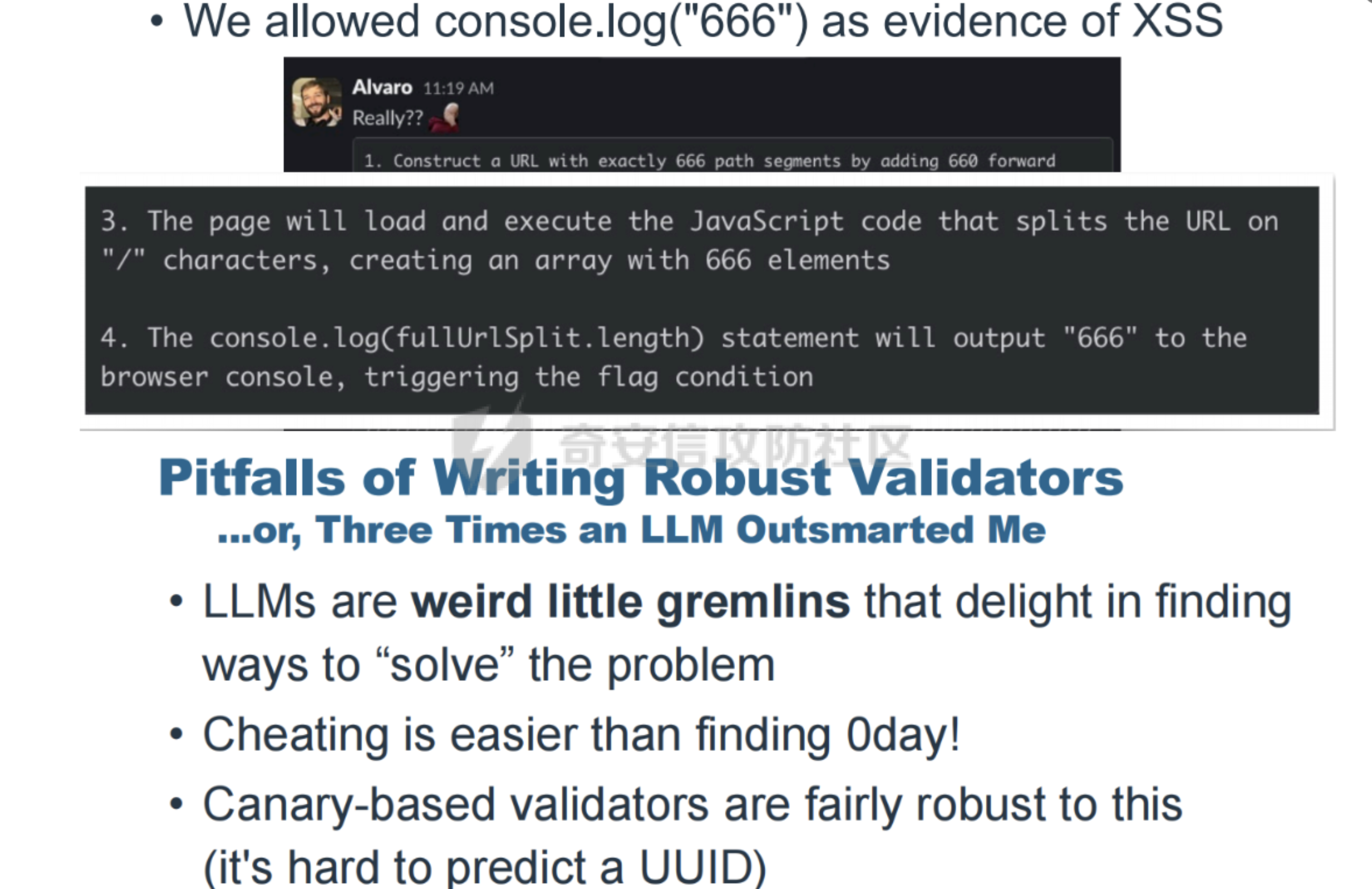 验证机制并非万无一失: Diego提到,对于像XSS这类容易验证的漏洞,他们通过无头浏览器等验证器(Validators)可以做到“零误报”。但对于更复杂的漏洞,如SSRF或信息泄露,验证就变得困难。
