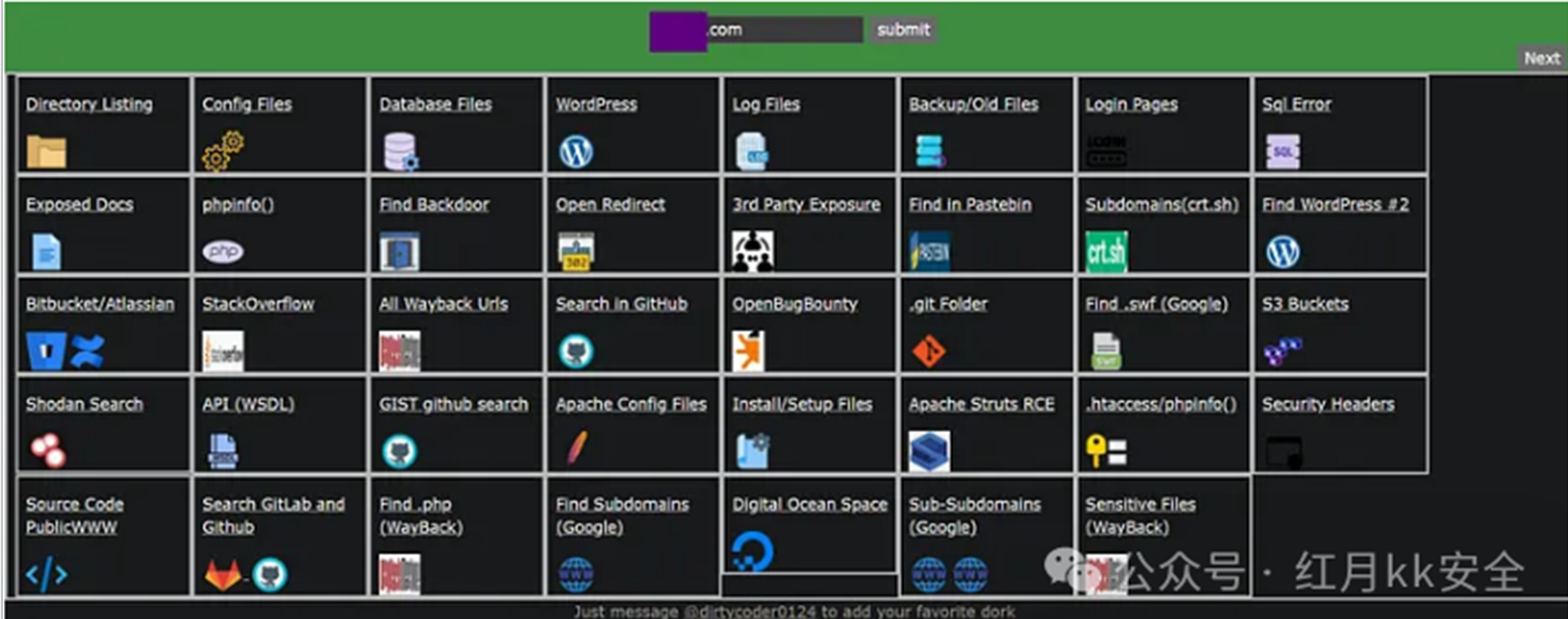 我觉得这个工具很棒,因为你不必反复手工输入那些 dork(查询语句),还能更快发现敏感的 PHP 文件、S3 桶、子域等信息。