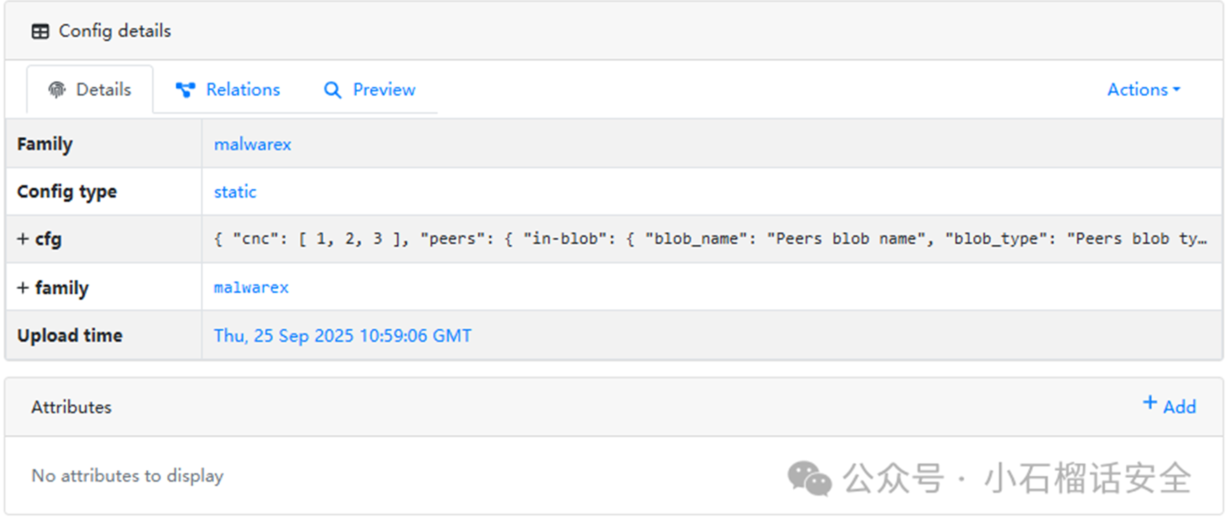 Config:从样本中提取的静态配置或从 C&C 服务器获取的动态配置,格式为json; -