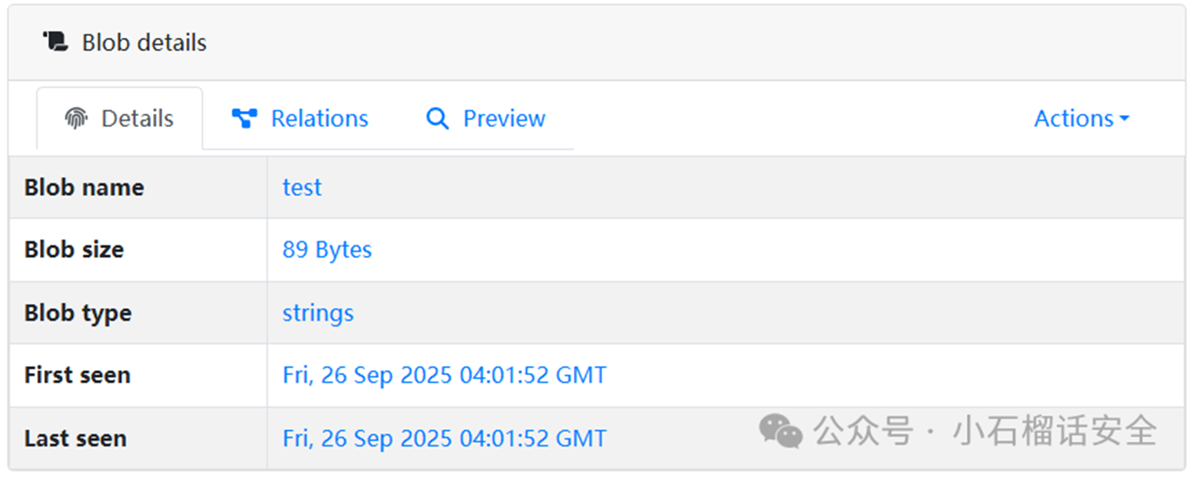 在 MWDB 中,Blob 表示以非结构化形式存储的各种数据 ,这些数据经过简单格式化以便于人类阅读。此外,还可以存储本来属于Config的数据,但这些数据太大而无法方便地用 JSON 表示 。
