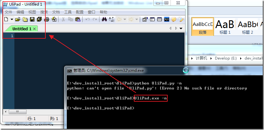 使用Ulipad是在cmd里运行C:\Python27>python E:\Python\Tool\ulipad.4.1\ulipad.py 就出来了,不过这窗口可不可以关,如果这ulipad也就跟着退出了。
