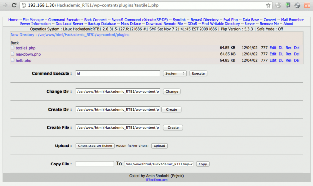 Do not forget this important part: remove your tracks. Now that you’re root on the machine, it shouldn’t be difficult 😉 Also think of restoring the wordpress plugin that you have modified to create your PHP shell.