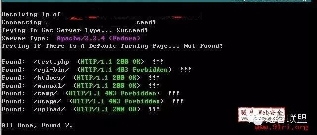以上只是很简单的手工对程序指纹进行分析,当然在针对web应用的扫描器,还有很多,比较常用的wvs、appscan等。用轻量级的”wwwscan”来扫描: