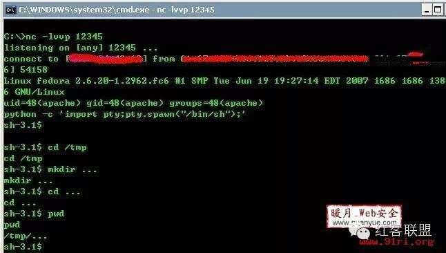 连接成功后,就能得到一个apache用户的shell,但有时如果不能交互时,可以直接执行,