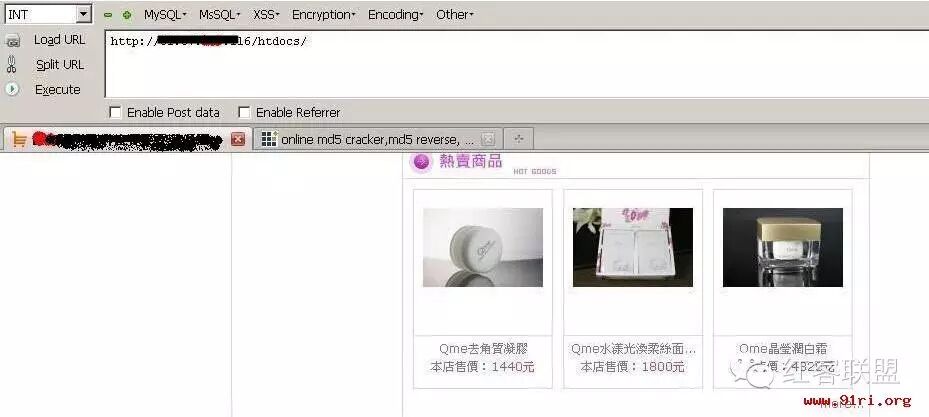 发现此站是EcShop架构的站点,其使用的版本信息是V2.5.0。EcShop的版本是存在许多的注入点的。其中user.php文件有个注入漏洞,直接请求URL如下: