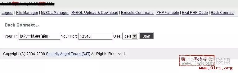 利用WebShell自带的反弹功能直接连接本地的12345端口并返回shell如图: