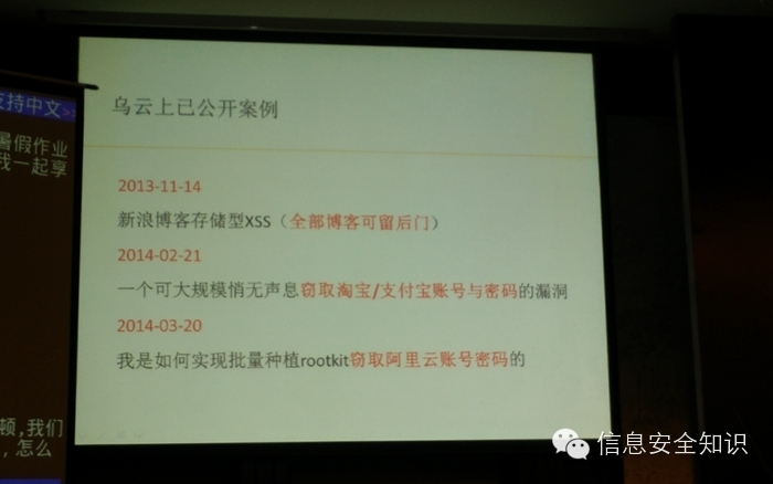 二哥的爆料也灰常猛,包括之前利用某狐视频漏洞发动巨大量级的访问(全球最大跨站DDoS攻击主角现身:搜狐视频爆XSS漏洞变身DDoS怪兽),利用某克的评论插件让李开复中招,在演示完中招用户看所有视频网站都会执行恶意代码的时候,观众明显受到了震撼。(安全牛可不会告诉你某酷的XSS问题依然存在)